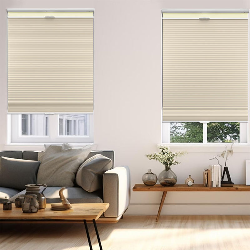 Enkellaagse honingraatjaloezieën bieden kernvoordelen zoals eenvoud, lichtheid, hoge kosteneffectiviteit, warmte- en geluidsisolatie, ruimtebesparing en eenvoudige installatie. De stof kan naar behoefte worden gekozen uit semi-transparant of verduisterend. De handmatige versie heeft een snoerloos push-pull-ontwerp, wat veiligheid, soepele bediening en esthetische aantrekkingskracht garandeert. De elektrische versie is uitgerust met een speciale stille intelligente motor, die meerdere bedieningsmethoden biedt. Door de combinatie van functionaliteit en esthetisch ontwerp vergroot het het gebruiksgemak en de veiligheid, en vereist het geen complex onderhoud. Het is de voorkeursoplossing voor wie op zoek is naar eenvoudige, praktische en kosteneffectieve raamzonwering.